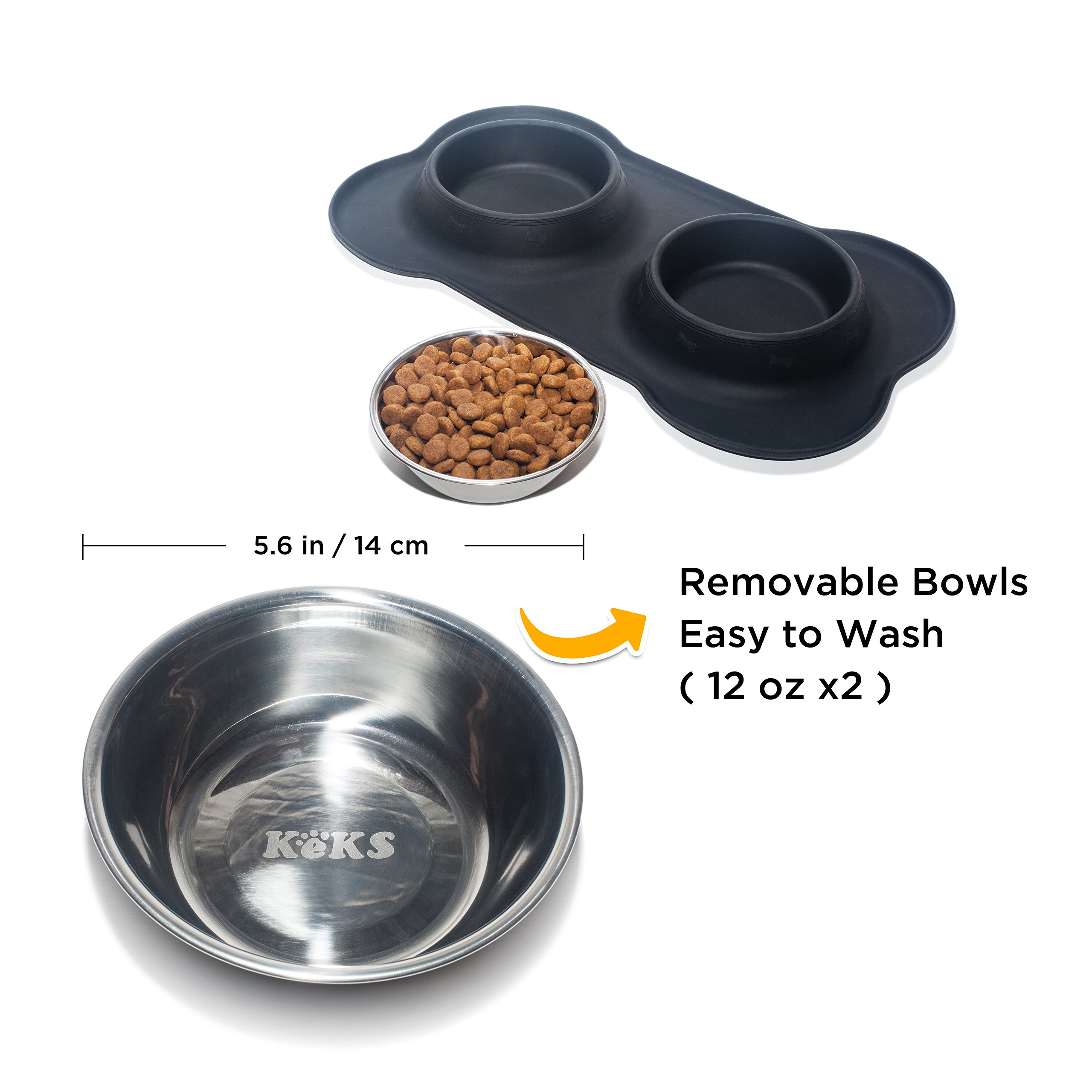 The stainless steel dog bowls hold up to 11 oz., making them best suited as food or dog water bowls for small dogs, or as temporary dog bowls to buy for puppies. The elevated pet feeder can be removed from the resin structure, for easy cleaning and refill. Both pet bowls and platform is ... Fetch Here