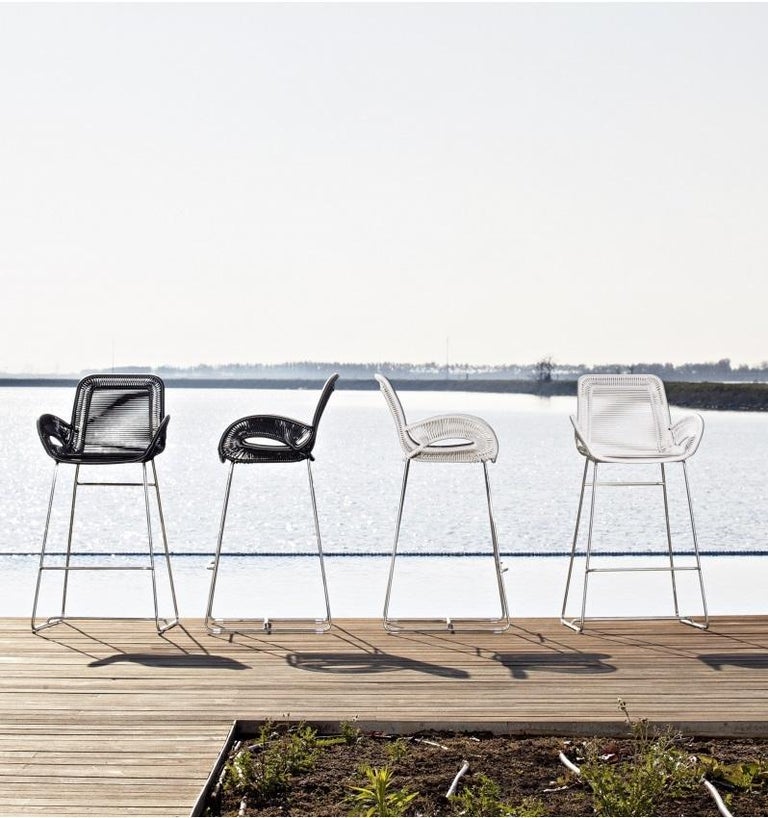 Set Of 4, Outdoor Bar Stools Handwoven White Or Black With ...